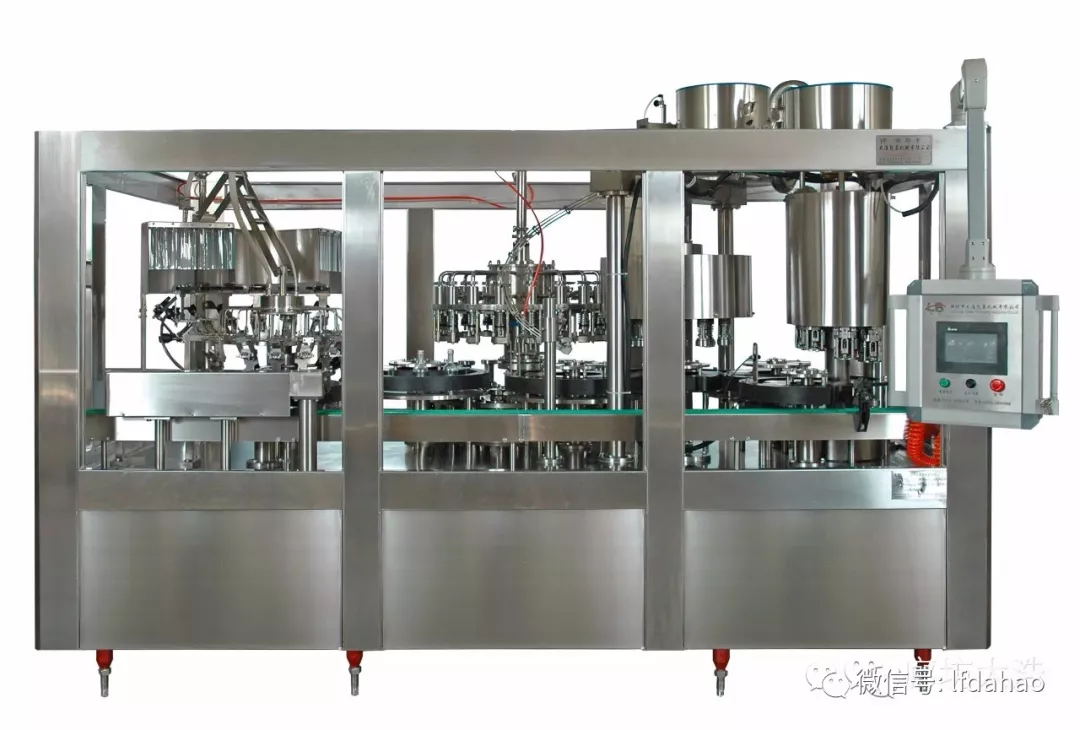 为满足天津大亨集团的生产需求,我公司为其提供组合式灌装系统,灌装系统采用2+1+1模式,洗瓶灌装+金属螺纹盖旋盖系统+皇冠盖压盖系统,产能达到10000瓶/时。
